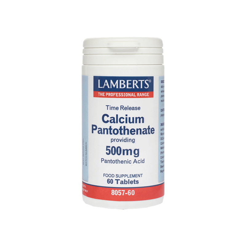 To σκεύασμα Calcium Pantothenate 500mg της Lamberts παρέχει εγγυημένα 500mg Βιταμίνης Β5 (σε μορφή παντοθενικού ασβεστίου) και όπως όλα τα σκευάσματα της Lamberts, παρασκευάζεται εντός του Ηνωμένου Βασιλείου σύμφωνα με τα αυστηρά πρότυπα της Φαρμακευτικής GMP (Pharmaceutical GMP).