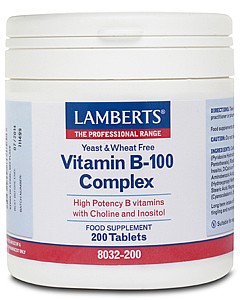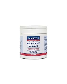 To B-100 Complex της Lamberts, αποτελεί μια εξειδικευμένη διατροφική φόρμουλα υψηλής ισχύος που παρέχει το σύνολο των βιταμινών του συμπλέγματος Β. Αρκετές από τις βιταμίνες του συμπλέγματος Β συμβάλλουν*: