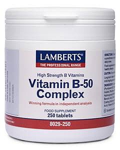 To B-50 Complex της Lamberts, αποτελεί μια εξειδικευμένη διατροφική φόρμουλα υψηλής ισχύος που παρέχει το σύνολο των βιταμινών του συμπλέγματος Β. Αρκετές από τις βιταμίνες του συμπλέγματος Β συμβάλλουν*: