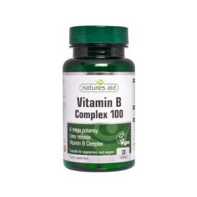 Η Natures Aid® Vitamin B Complex 100 συμβάλλει στην μείωση της κούρασης και καταπόνησης και στην καλή λειουργία του νευρικού συστήματος.