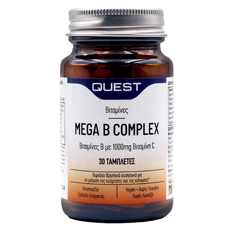 Το Mega B Complex της Quest είναι συμπλήρωμα διατροφής και δεν υποκαθιστά μια ισορροπημένη διατροφή. Αρ. Γν. ΕΟΦ: 51721/08-08-2006.