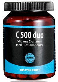 Το C 500 duo περιέχει επίσης Βιοφλαβονοειδή τα οποία προστατεύουν τη βιταμίνη και ενισχύουν την αποτελεσματικότητά της στον οργανισμό.