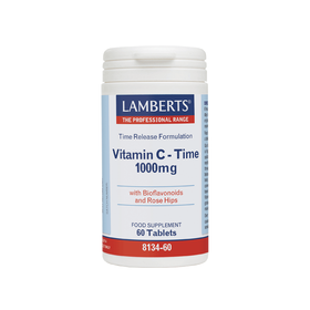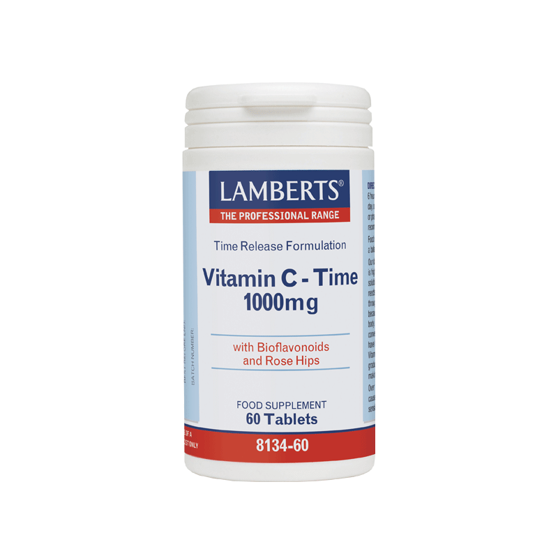 To σκεύασμα Vitamin C Time Release 1000mg της Lamberts παρέχει εγγυημένα 1000mg Βιταμίνης C σε δισκία ελεγχόμενης αποδέσμευσης και μία σημαντική ποσότητα βιοφλαβονοειδών (ρουτίνη, κερσετίνη, κιτρίνη και εσπεριδίνη)τα οποία συμβάλλουν στην απορρόφησή της από τον οργανισμό και σκόνη καρπών αγριοτριανταφυλλιάς (Rose Hips). Όπως όλα τα σκευάσματα της Lamberts, παρασκευάζεται εντός του Ηνωμένου Βασιλείου σύμφωνα με τα αυστηρά πρότυπα της Φαρμακευτικής GMP (Pharmaceutical GMP).