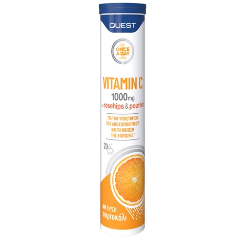 Το συμπλήρωμα διατροφής Vitamin C 1000mg της Quest είναι μια αναβράζουσα βιταμίνη C των 1000mg, μαζί με ρουτίνη και Rose hip (άγριο τριαντάφυλλο) που αυξάνουν την απορρόφηση της. Με υπέροχη γεύση πορτοκάλι.