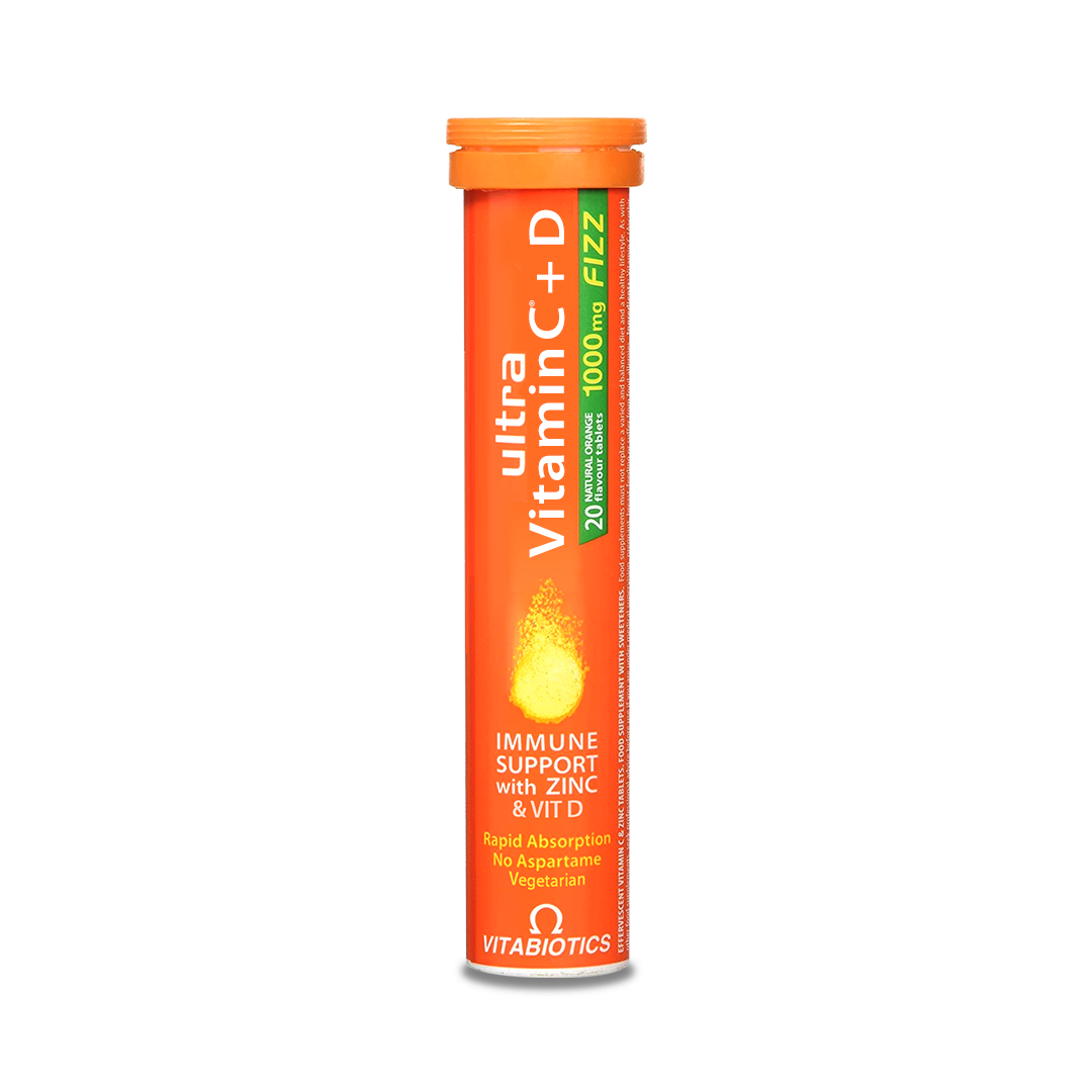 Το Vitabiotics Ultra Vitamin C + D Orange Flavour είναι ένα συμπλήρωμα διατροφής με βιταμίνη C, βιταμίνη D και ψευδάργυρο σε αναβράζουσα μορφή. Διαθέτει υπέροχη γεύση πορτοκάλι και αποτελεί ιδανική επιλογή για ενίσχυση του ανοσοποιητικού συστήματος την περίοδο του χειμώνα.