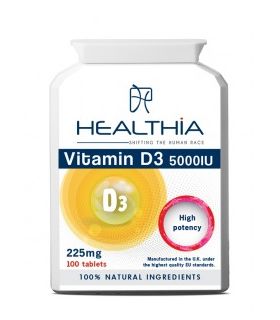 Αυξήστε εύκολα και άμεσα τα επίπεδα βιταμίνης D στον οργανισμό σας με τη D3 5000IU high potency της Healthia, με μόλις 1 ταμπλέτα την ημέρα.