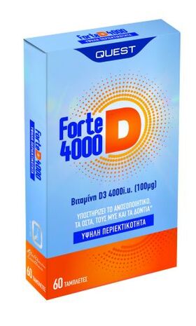 Quest Forte D 4000 60 tabs Μια ταμπλέτα ημερησίως με το φαγητό.