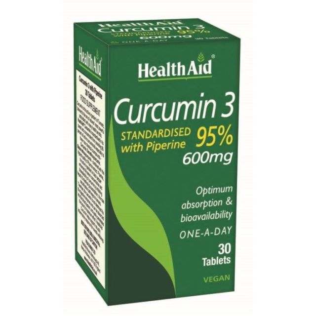 Το συμπλήρωμα διατροφής Health Aid Curcumin 3 600 mg περιέχει εκχύλισμα κουρκουμά (Turmeric - Curcuma longa) με υψηλή περιεκτικότητα στη δραστική ουσία κουρκουμίνη.