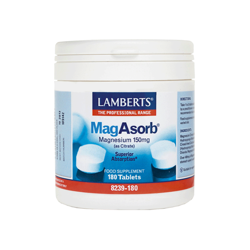 Το MagAsorb της Lamberts παρέχει εγγυημένα 150mg υψηλής βιοδιαθεσιμότητας μαγνήσιο σε μορφή κιτρικού άλατος (καθώς συγκριτική μελέτη με λοιπές ευρέως χρησιμοποιούμενες μορφές αλάτων μαγνησίου, απέδειξε ότι η απορρόφηση του Mag Asorb της Lamberts υπερείχε σε σχέση με αυτές).
