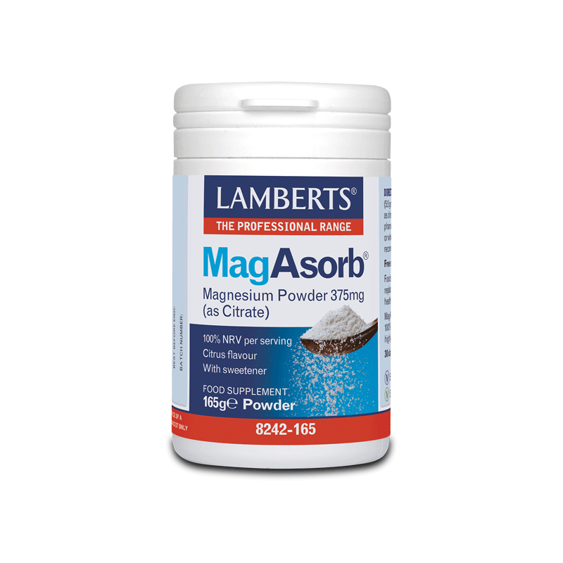 Το MagAsorb Powder της Lamberts παρέχει υψηλής βιοδιαθεσιμότητας μαγνήσιο σε μορφή κιτρικού άλατος (καθώς συγκριτική μελέτη με λοιπές ευρέως χρησιμοποιούμενες μορφές αλάτων μαγνησίου, απέδειξε ότι η απορρόφηση του Mag Asorb της Lamberts υπερείχε σε σχέση με αυτές).