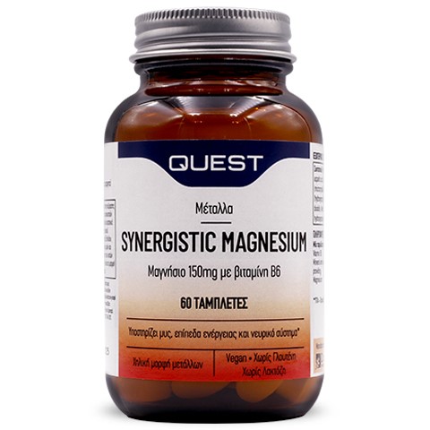Το Synergistic Magnesium της Quest είναι συμπλήρωμα διατροφής και δεν υποκαθιστά μια ισορροπημένη διατροφή. Αρ. Γν. ΕΟΦ: 49008/25-07-2006.