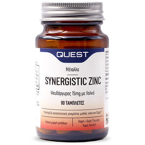 Το Synergistic Zinc 15mg της Quest είναι συμπλήρωμα διατροφής και δεν υποκαθιστά μια ισορροπημένη διατροφή. Αρ. Γνωστ. ΕΟΦ: 29080/01-07-2000.