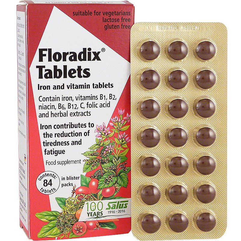 Η μέρα τελειώνει, όχι όμως και οι αντοχές σας! Τονωθείτε, με Floradix Tablets! Ιδανικό για εσάς που θέλετε ενέργεια σε μορφή… ταμπλέτας. Το  Floradix Tablets περιέχει οργανικό γλυκονικό σίδηρο (ΙΙ), βιταμίνες Β2, Β6, Β12 και C που συμβάλλουν στη μείωση της κούρασης και της κόπωσης, καθώς και στη φυσιολογική λειτουργία των μεταβολικών διεργασιών που αποσκοπούν στην παραγωγή ενέργειας. Ο σίδηρος συμβάλλει στο φυσιολογικό σχηματισμό ερυθρών αιμοσφαιρίων (με την υποστήριξη των βιταμινών Β6 και Β12) και της αιμοσφαιρίνης. Επιπρόσθετα το φολικό οξύ συμβάλλει στην ανάπτυξη του μητρικού ιστού κατά την εγκυμοσύνη. Επιπλέον, η βιταμίνη C αυξάνει την απορρόφηση του σιδήρου.