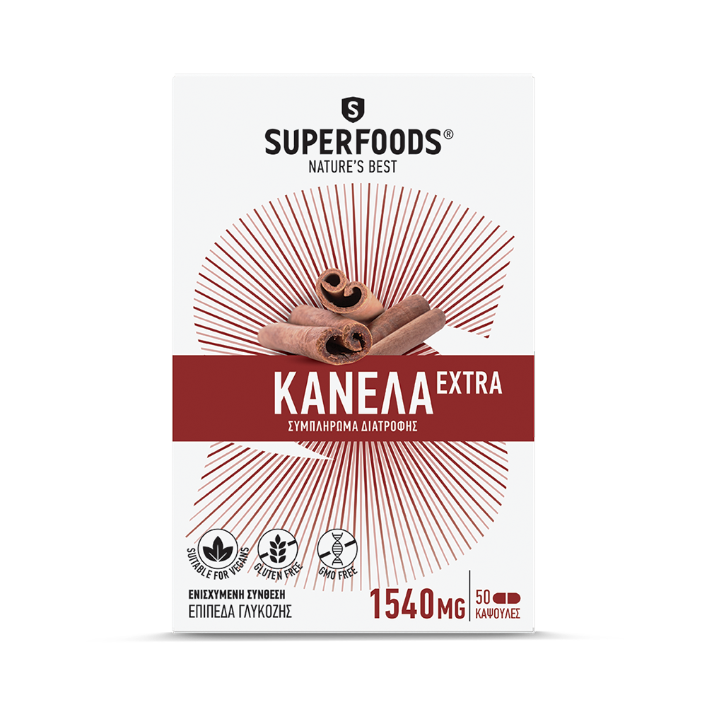 Σύνθεση από φυσικό εκχύλισμα Κανέλας εμπλουτισμένο με συγκεκριμένα ιχνοστοιχεία, βιταμίνες και μέταλλα όπως χρώμιο που συμβάλλουν στη διατήρηση των φυσιολογικών επιπέδων της γλυκόζης στο αίμα και δρουν συνεργικά με την Κανέλα.