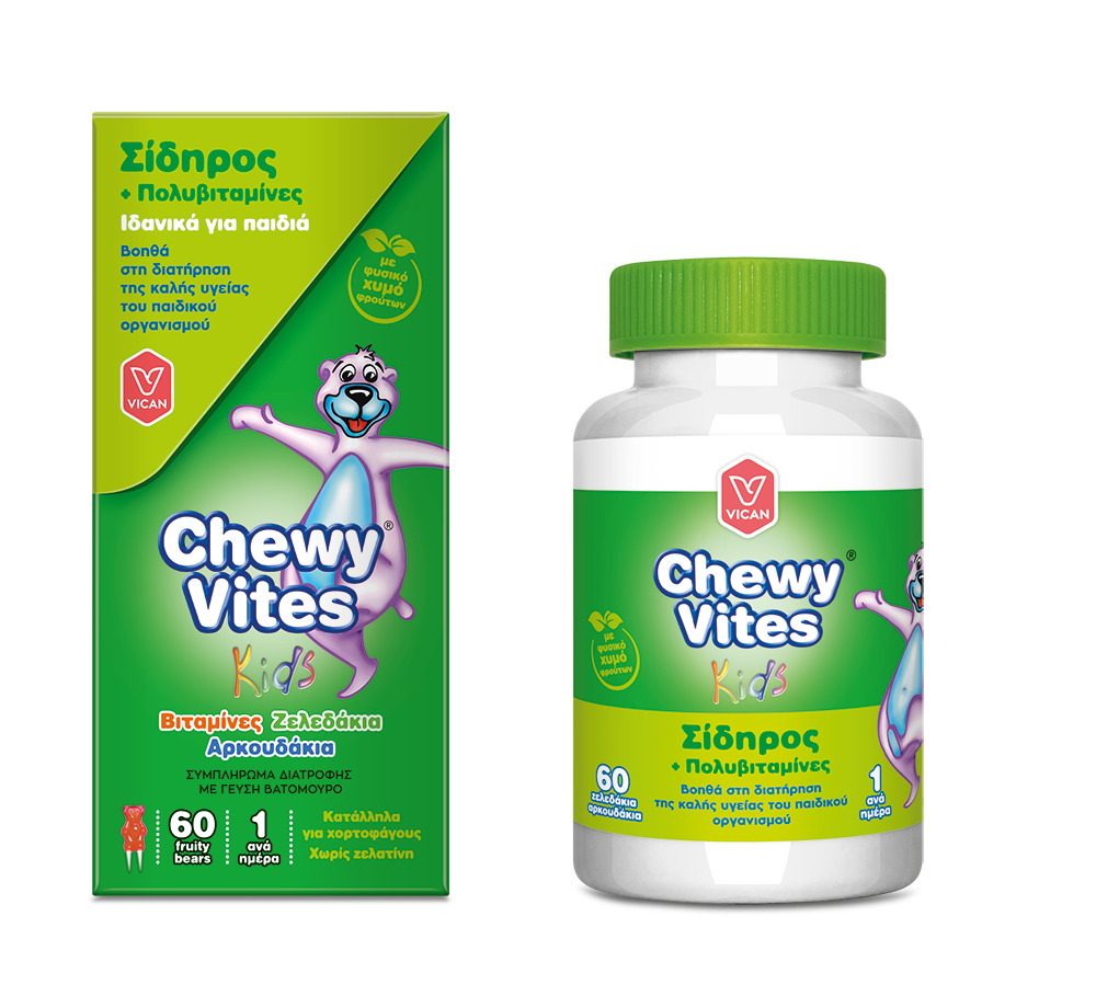 Οι Chewy Vites® Kids με Σίδηρο και πολυβιταμίνες είναι μασώμενες βιταμίνες σε μορφή ζελεδάκια αρκουδάκια, η νόστιμη και αποτελεσματική λύση για την αντιστάθμιση της ανεπάρκειας σιδήρου στα παιδιά. Ένα ζελεδάκι αρκουδάκι ChewyVites περιέχει 5mg σιδήρουκαι έναν συνδυασμό απαραίτητων βιταμινών (B6, B12 &C) που συμβάλλουν στην ομαλή λειτουργία του ανοσοποιητικού συστήματος.