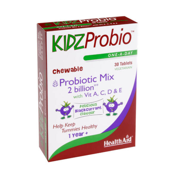 Το KIDZ Probio της HealthAid είναι μία εξαιρετική σύνθεση προβιοτικών 2 δις υψηλών προδιαγραφών για παιδιά, με βιταμίνες Α, C, D και Ε για τη διατήρηση της καλής υγείας του ευαίσθητου πεπτικού τους.