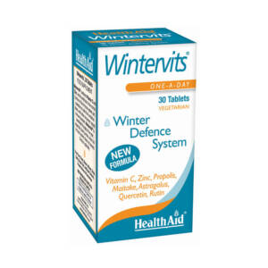 Το Wintevits της HealthAid είναι σύνθεση που συνδυάζει την Βιταμίνη C με Ψευδάργυρο, Μαϊτάκε, είδος μανιταριού με ιδιαίτερα τονωτικές ιδιότητες, Αστράγαλο και Πρόπολη.