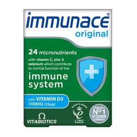 Το συμπλήρωμα διατροφής Immunace της Vitabiotics αποτελεί μοναδικό συνδυασμό ισχυρών αντιοξειδωτικών και απαραίτητων θρεπτικών συστατικών που βοηθούν στην άμυνα του οργανισμού, εμποδίζοντας τη φθορά των κυττάρων και βοηθώντας τον οργανισμό να αντισταθεί στις μολύνσεις και τα κρυολογήματα.