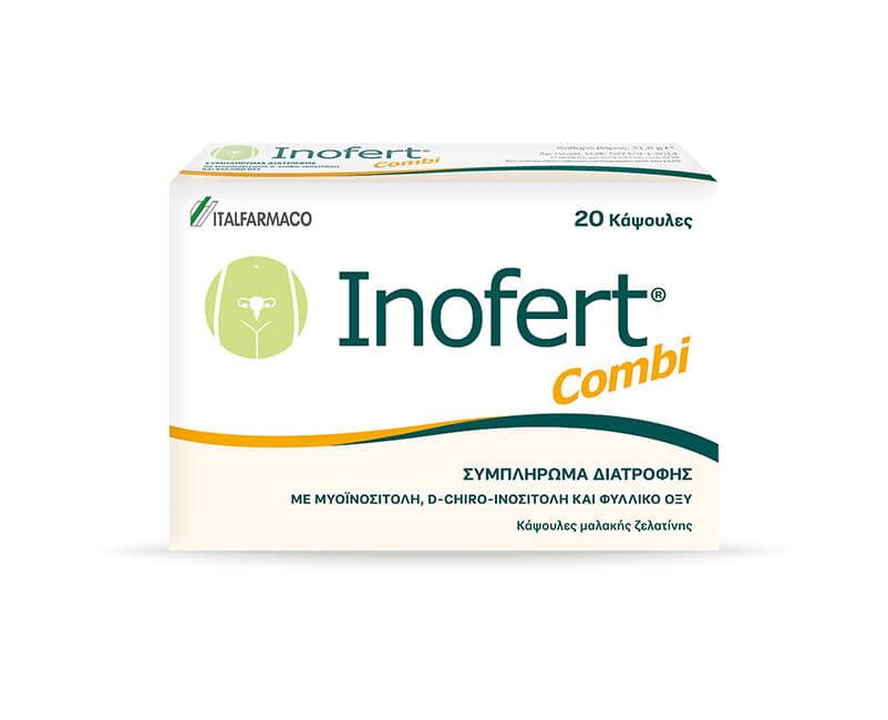 Το Inofert Combi είναι ένα συμπλήρωμα διατροφής που περιέχει μυο-ινοσιτόλη, D-chiro-ινοσιτόλη και φυλλικό οξύ.