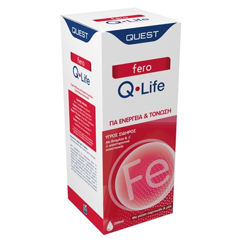 Το Fero Q-Life είναι ένα αποτελεσματικό συμπλήρωμα σιδήρου με υπέροχη γεύση πορτοκάλι και μέλι, κατάλληλο για παιδιά και ενήλικες. Προτείνεται κυρίως σε άτομα που έχουν χαμηλά επίπεδα σιδήρου ή φερριτίνης, χορτοφάγους και σε περιόδους έντονης κόπωσης, εξάντλησης και αυξημένων απαιτήσεων σε σίδηρο, όπως κατά τη διάρκεια της εμμήνου ρύσεως και της εγκυμοσύνης.