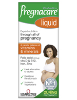 Το συμπλήρωμα διατροφής Pregnacare Liquid της Vitabiotics είναι μια μοναδική σύνθεση απαραίτητων βιταμινών και μετάλλων ειδικά σχεδιασμένη για τη διατροφική υποστήριξη των γυναικών κατά την περίοδο της εγκυμοσύνης.