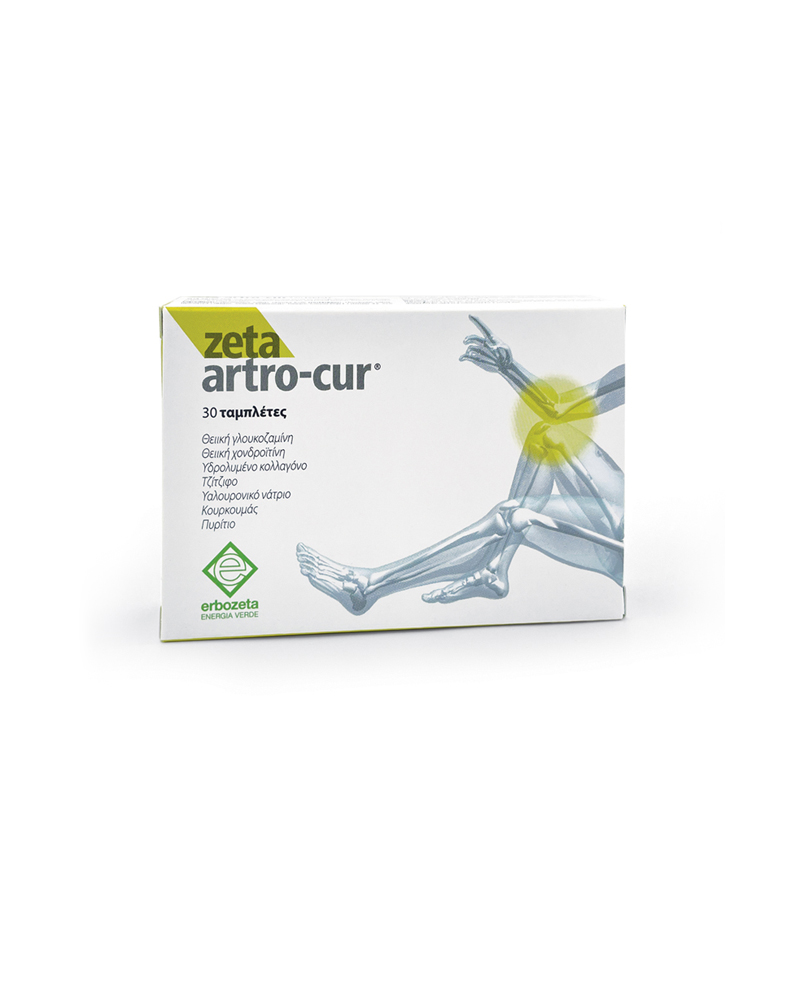 Το συμπλήρωμα διατροφής Zeta Artro-Cur βοηθά στην μείωση της έντασης των συμπτωμάτων που προέρχονται από αρθροπάθεια, αρθρίτιδα, οστεοαρθρίτιδα και χρόνια χονδροπάθεια. Τα συστατικά του βοηθούν όχι μόνο στην βελτίωση της λειτουργίας των αρθρώσεων, αλλά και στην αντιμετώπιση ενδεχόμενων φλεγμονών, αυξάνοντας με αυτόν τον τρόπο την αυτονομία κινήσεων και μειώνοντας τον κίνδυνο πτώσεων και καταγμάτων. Το βασικό του πλεονέκτημα βρίσκεται στο συνδυασμό του Κουρκουμά, του Τζίτζιφου και του Πυριτίου.