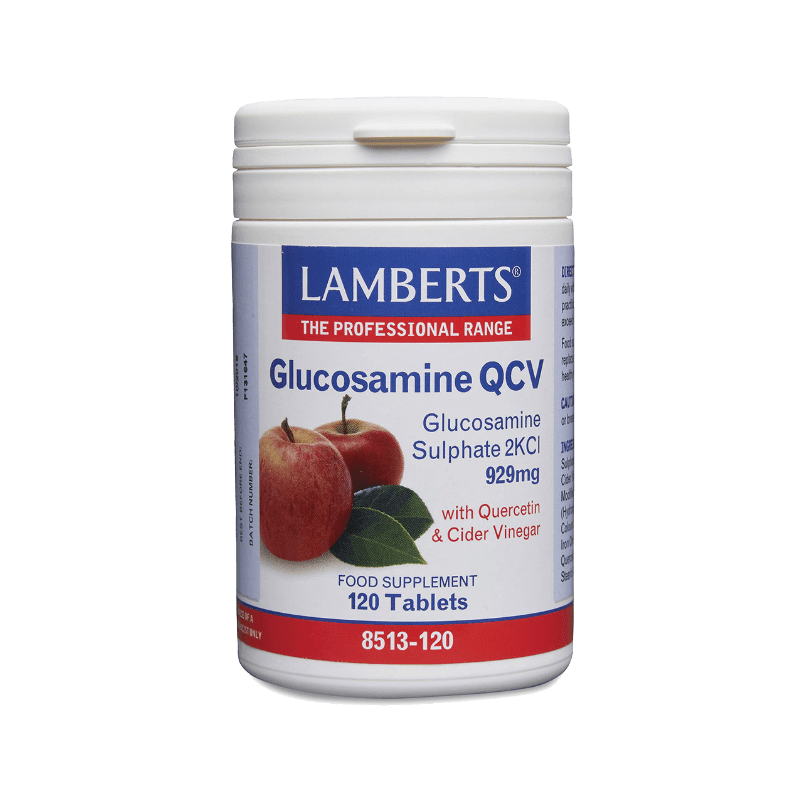 Η Glucosamine QCV αποτελεί ένα μοναδικό σκεύασμα το οποίο παρέχει 1400mg θειικής γλυκοζαμίνης (ανά 2 ταμπλέτες), μηλόξυδο και κερσετίνη. Η κερσετίνη (quercetin) υπάγεται στα βιοφλαβονοειδή, συναντάται στα φρούτα και τα λαχανικά (ιδιαιτέρως στα μήλα), και λόγω της ισχυρής της αντιοξειδωτικής δράσης αποτελεί ένα από τα λίγα βιοφλαβονοειδή που έχουν χρησιμοποιηθεί σε ανθρώπινες μελέτες.
