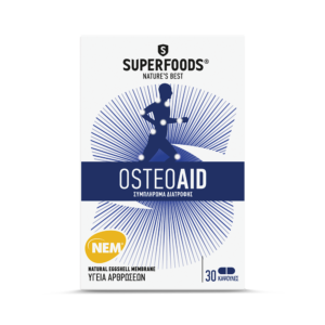 Το SUPERFOODS OSTEOAID χάρη στο καινοτόμο συστατικό NEM® που περιέχει, συμβάλλει στην υποστήριξη των αρθρώσεων, στην καλύτερη κίνηση τους και στην βελτίωση της δυσκαμψίας.