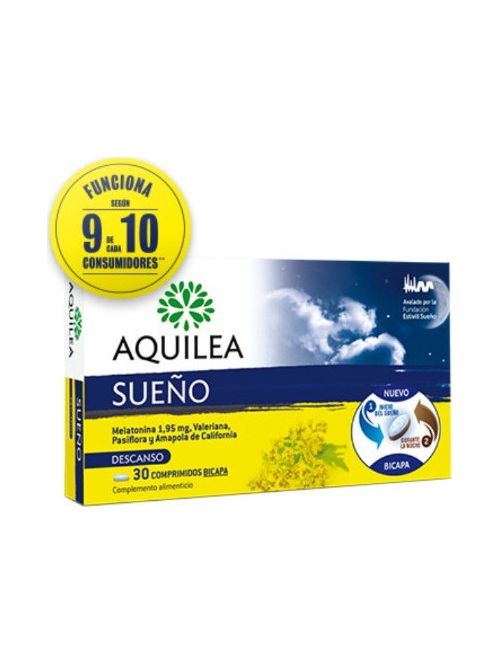Το Aquilea Sleep είναι ένα προϊόν που αναπτύχθηκε για να προάγει τον ποιοτικό ύπνο χάρη στη φόρμουλα του, μια πρωτοποριακή συμπιεσμένη διπλή στρώση, η οποία σχεδιάστηκε ειδικά για να απελευθερωθούν τα συστατικά τους όπως χρειάζονται: το πρώτο στρώμα απελευθερώνεται γρήγορα κατά την έναρξη του ύπνου και το δεύτερο στρώμα απελευθερώνεται σταδιακά όλη τη νύχτα.