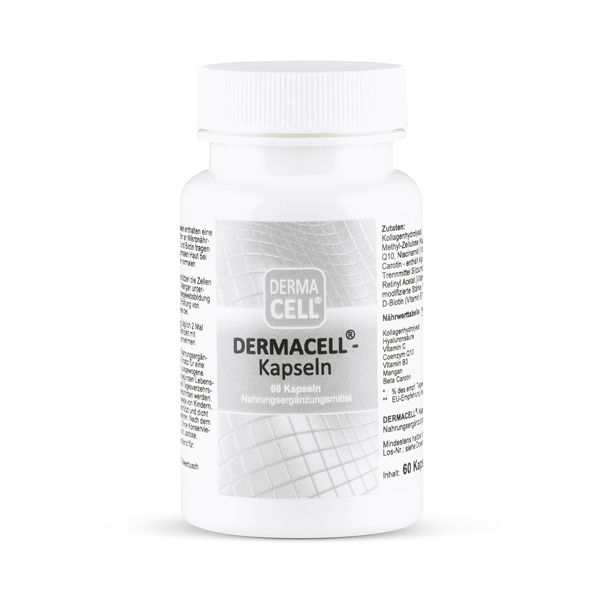 Το Dermacell Kapseln είναι ένα συμπλήρωμα διατοφής για την εξυγίανση του δέρματος, την ανανέωση από τις εσωτερικές στιβάδες του δέρματος προς τις εξωτερικές, την αντιγήρανση του δέρματος, την ξηρότητα, τους λεκέδες του δέρματος. Ιδανικό στη θεραπεία των δερματικών παθήσεων όπως ακμή, έκζεμα, ψωρίαση κ.ά.
