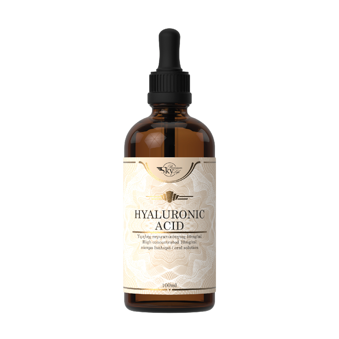 Το συμπλήρωμα διατροφής Hyaluronic Acid της σειράς Sky Premium Life περιέχει υαλουρονικό οξύ, ένα φυσικό συστατικό που απαντάται στους ιστούς σχεδόν όλων των ζωντανών οργανισμών. Βρίσκεται στην εξωτερική επιφάνεια της κυτταρικής μεμβράνης κάθε κυττάρου του οργανισμού. Στον άνθρωπο αποτελεί σχεδόν το 45% του συνδετικού ιστού και είναι η κύρια λιπαντική ουσία των μυών και των αρθρώσεων με πολλαπλή προστατευτική δράση. Επιπλέον, χρησιμοποιείται ευρέως από την κοσμετολογία, ως πρώτη ύλη σε πολλές κρέμες και ορούς.