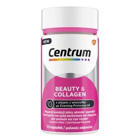 Το Centrum Beauty & Collagen είναι ένα συμπλήρωμα διατροφής με βιταμίνες, μέταλλα, κολλαγόνο και έλαιο νυχτολούλουδου για την ενίσχυση της υγείας και της ομορφιάς του σώματος.