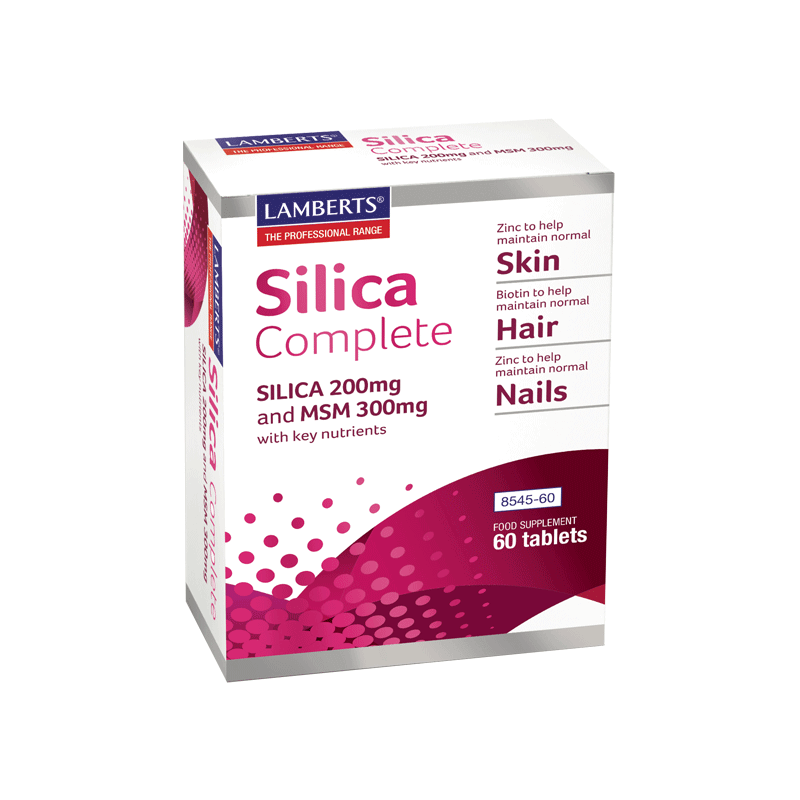Το Silica Complete αποτελεί μια ειδικά σχεδιασμένη φόρμουλα από το Επιστημονικό Τμήμα της Lamberts καθώς περιέχει Ψευδάργυρο (συμβάλλει στην διατήρηση της υγείας των μαλλιών και των νυχιών*), Βιοτίνη (συμβάλλει στην διατήρηση της υγείας τoυ δέρματος*) και Βιταμίνη C ( συμβάλλει στην φυσιολογική σύνθεση του κολλαγόνου*). Το κολλαγόνο αποτελεί την κυριότερη και σημαντικότερη πρωτεΐνη του ανθρώπινου δέρματος και συγχρόνως την σημαντικότερη πρωτεΐνη του ανθρώπινου οργανισμού.