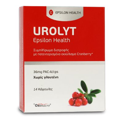 To Epsilon Health Urolyt είναι ένα συμπλήρωμα διατροφής με το πατενταρισμένο εκχύλισμα cranberry oximacro, για την υγεία του ουροποιητικού συστήματος.