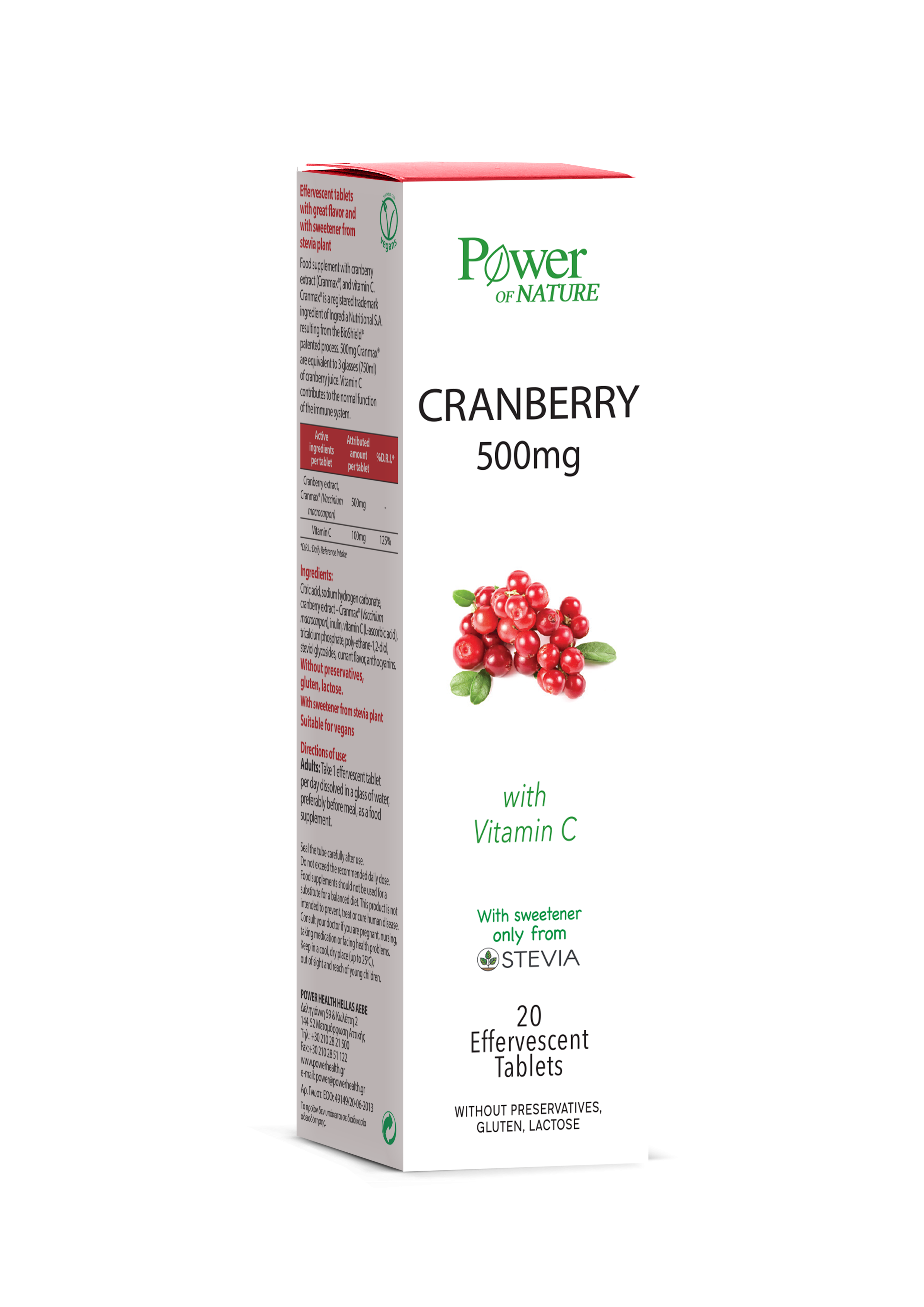 Στη σειρά POWER FOODS έρχεται το Κράνμπερι, ένα συμπλήρωμα διατροφής σε αναβράζουσα μορφή, με εκχύλισμα κράνμπερι (Cranmax®) και βιταμίνη C. Το κράνμπερι αν και μικρό φρούτο αποτελεί μία υπερτροφή. Δεν είναι τυχαίο ότι το αποκαλούν “κόκκινο θησαυρό”, καθώς είναι πλούσια πηγή πολυφαινολών, προανθοκυανιδινών, ουσιών που προσδίδουν το κόκκινο χρώμα στο κράνμπερι, ενώ εμποδίζουν την ανάπτυξη παθογενών παραγόντων στο ουροποιητικό σύστημα.