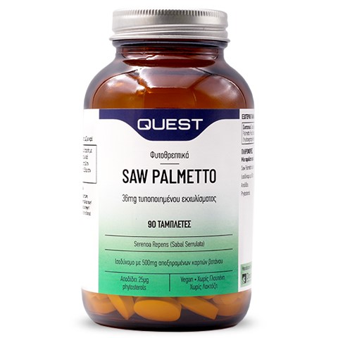 Το συμπλήρωμα διατροφής Saw Palmetto της Quest περιέχει εκχύλισμα από τους καρπούς του φυτού σο παλμέτο (Serenoa serrulata), το οποίο χρησιμοποιείται παραδοσιακά από τους ιθαγενείς της Αμερικής.