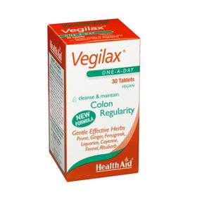 Το Health Aid Vegilax είναι ένα διατροφικό συμπλήρωμα από φυτικής προέλευσης ουσίες, το οποίο βοηθά την καλή λειτουργία και κένωση του εντέρου.