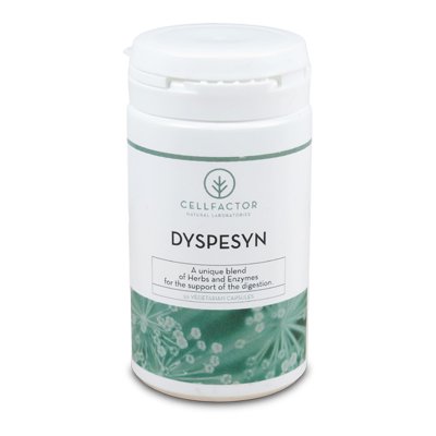 Το Metapharm Cellfactor Dyspesyn είναι ένα συμπλήρωμα διατροφής με βότανα και πεπτικά ένζυμα που δρα κατά της δυσπεψίας, του μετεωρισμού, του τυμπανισμού και των συμπτωμάτων του συνδρόμου ευερέθιστου εντέρου.
