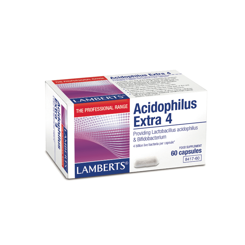 Το Acidophilus Extra 4 της Lamberts, περιέχει 4 δισεκατομμύρια φιλικά βακτήρια (κατά τη στιγμή της παρασκευής). Τα βακτηρίδια που περιέχονται στο Acidophilus Extra 4 είναι αποξηραμένα σε υψηλές θερμοκρασίες και περιβάλλονται από ένα οξεάντοχο κάλυμμα πολυσακχαρίτη, προστατεύοντας τα από το όξινο ph του στομάχου. Παρά το γεγονός ότι το Acidophilus είναι σταθερό σε θερμοκρασία δωματίου, για την διασφάλιση της μέγιστης δραστικότητας συνίσταται η αποθήκευσή του στο ψυγείο. Η ειδική συσκευασία του Acidophilus προστατεύει από τις συνθήκες υγρασίας, οι οποίες είναι γνωστό ότι συμβάλλουν στην αλλοίωση της βιωσιμότητας των βακτηριδίων.