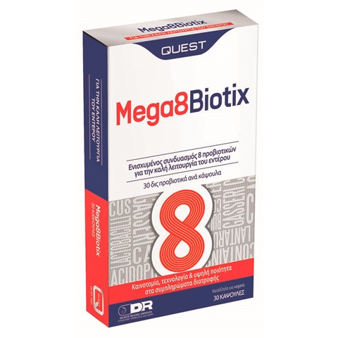 Το Mega 8 Biotix της Quest είναι ένας μοναδικός συνδυασμός 8 διαφορετικών προβιοτικών που αποδίδει μεγάλη ποσότητα – 30 δισεκατομμύρια – προβιοτικών ανά κάψουλα.