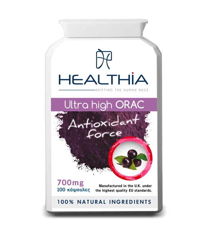 Το ORAC ULTRA της Healthia είναι μια πανίσχυρη φόρμουλα από superfoods που συνδυάζει 1065mg ξηρής σκόνης acai berry και εκχύλισμα, με 465mg επιπλέον αντιοξειδωτικά από βιοενεργά συστατικά: ρεσβαρατρόλη, κουκούτσι από σταφύλι και ρόδι.